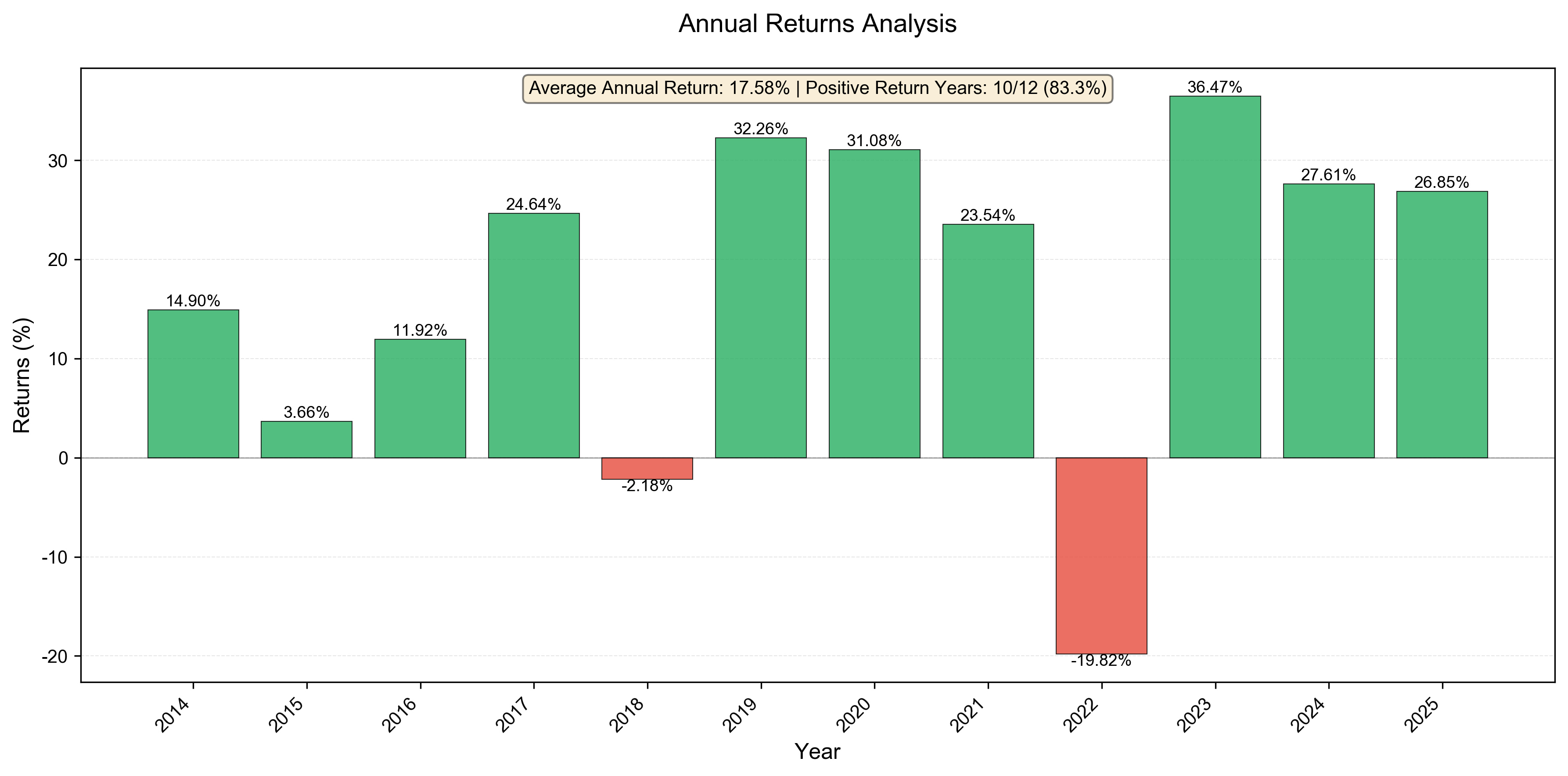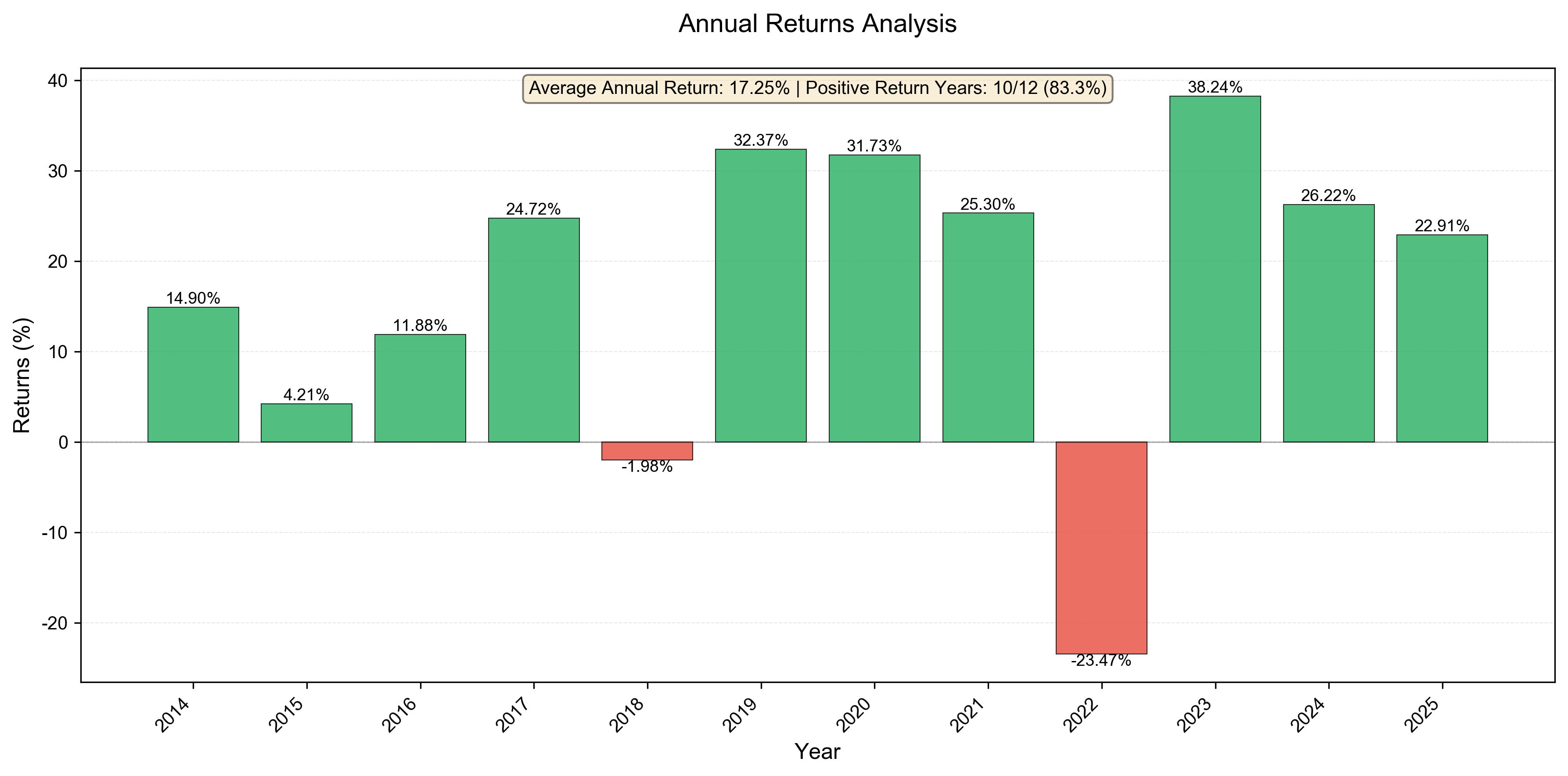 | Outperformance vs. Benchmark (SPY) | 5.68 percentage points annually |
